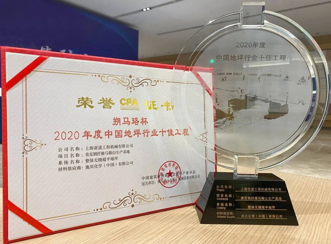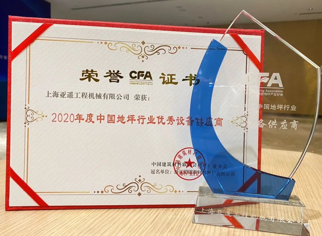 亞遙被評為2020年度中國地坪優(yōu)秀設(shè)備工具供應(yīng)商